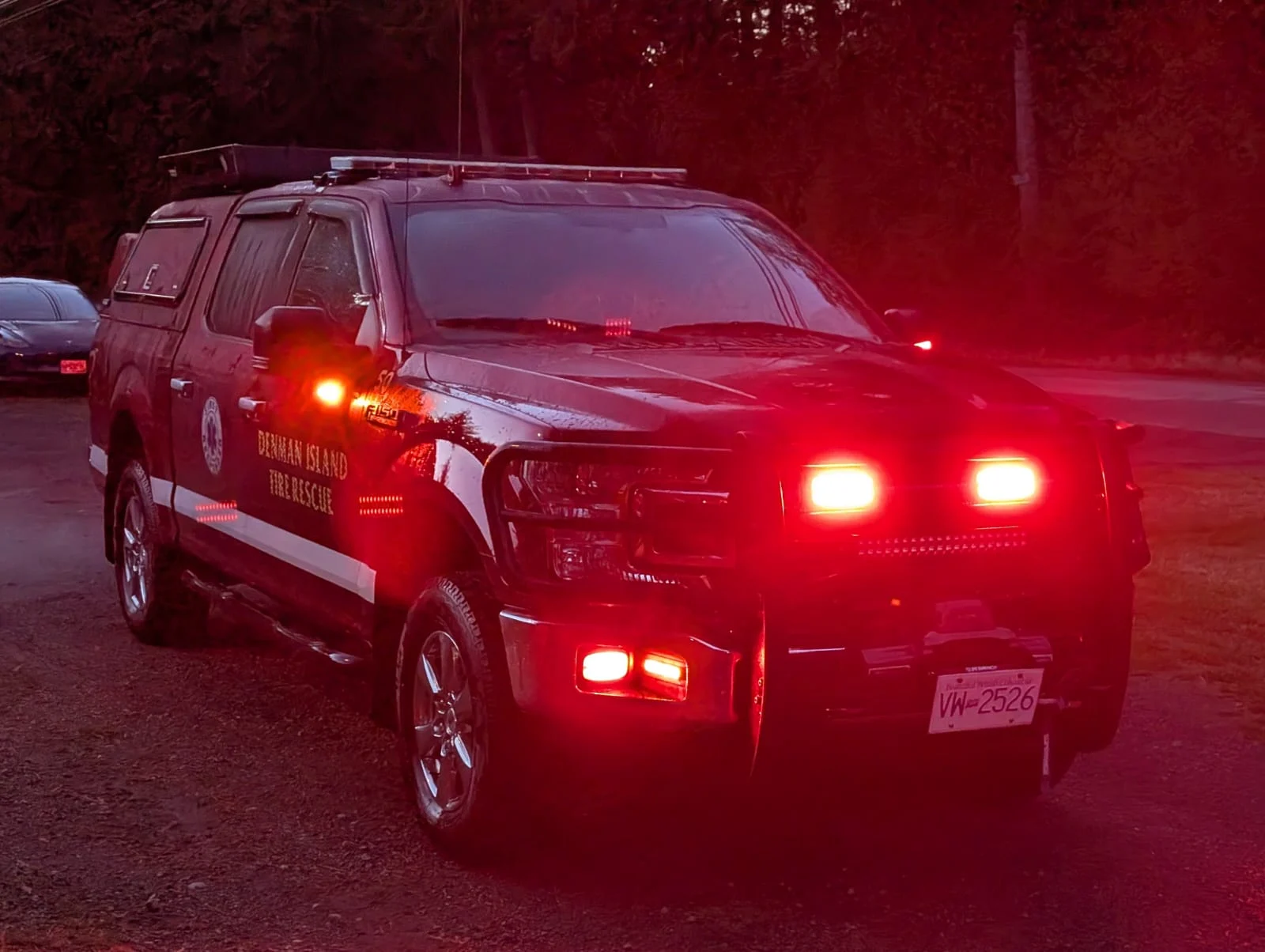 Utility vehicle 59 is a 2000 Ford f150 crew cab pickup with four-wheel drive. It was donated to the fire department by a Denman resident for our use. This vehicle is used for structure fire and wildfire incident support, in addition to personnel, and equipment, transport to and from incidents. It carries portable pumps, hose, and a porta-tank. 59 proceeds directly to an appropriate water source and sets up to quickly fill tankers 51, 52 and 54 as they transport a constant flow of water to a fire incident.
